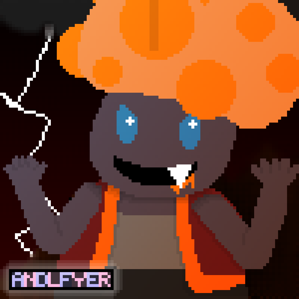 Fun fact: Toakaro is based on the Devil's Tooth fungus (Hydnellum peckii), which "bleeds" a red sap occasionally! This is also why Toakaro occasionaly drools orange liquid from his mouth, because his mushroom cap is pumping that throughout his system! His blood is still red, though. (Spoilered due to possibly being disturbing)